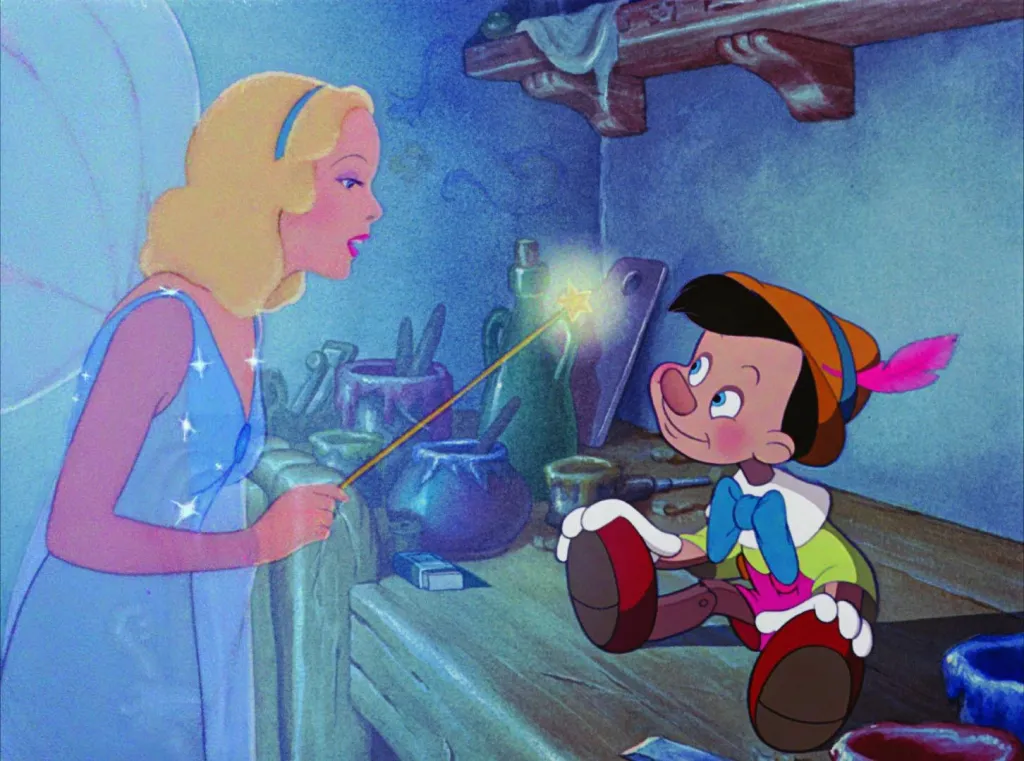 世界中で大ヒットした『白雪姫』の次作として二年の歳月と莫大な費用をかけて制作されました。白雪姫とは異なり、冒険物語の楽しさに溢れた成長物語です。リアルな描写と幻想的な描写を織り交ぜた演出は、当時多くの聴衆を驚かせました。『星に願いを(When You Wish Upon a Star)』の楽曲は、第13回アカデミー賞で歌曲賞を受賞しました。